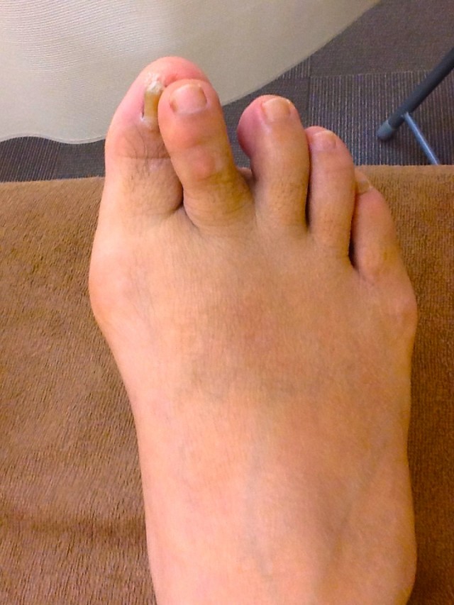 痛みとしては親指の付け根の部分、靴を履いて歩くのも、裸足で歩くのも痛むという状況でした。