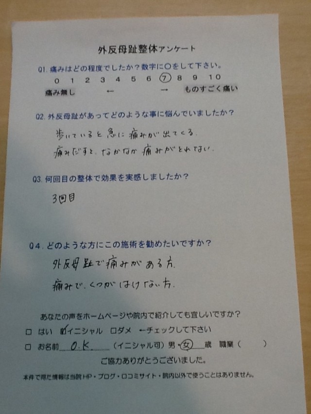 3件整骨院を変えても良くならなかった外反母趾の痛み 2015年9月30日